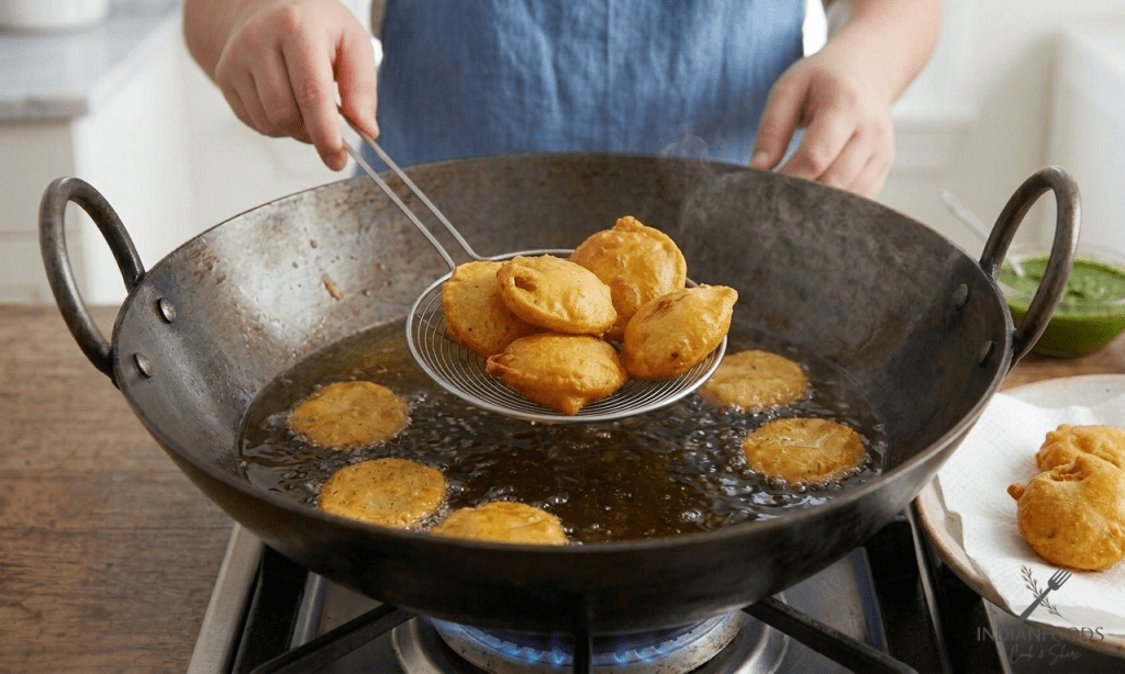 • Overcrowding the pan significantly lowers the oil temperature, which prevents the batter from sealing quickly and causes the pakoras to absorb excess oil, resulting in a greasy and soggy texture.