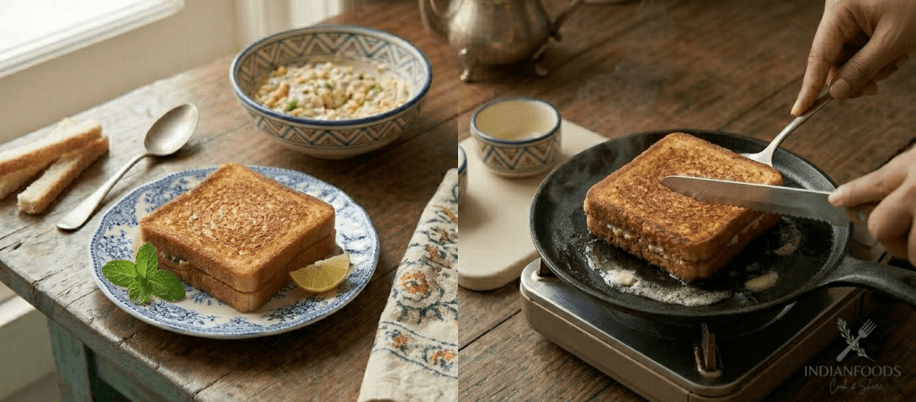 - This step is where you can have it cold as a cool tea sandwich. But in case you like a veg sandwich recipe that is crunchy, put a tawa or griddle over a small amount of butter.
