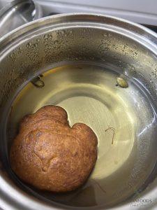 Take some ghee and put it into a heavier bottomed pan. Heat it with low or medium heat. It will take some time for the ghee to become hot. Once it is hot and smokes less, pour some batter into it using a ladle. It will take some form instantly. Let it stay and cook for some time until it becomes golden brown from below. Then flip it over to cook from the bottom as well. Do not cook Maalpua on high heat. It is slow cooking that is needed so it stays soft.Cook it on low to medium heat until the lower side gets golden brown. Turn it over and cook it till it gets evenly cooked and crunchy around the edges. It’s not recommended to cook Maalpua on high heat because it requires slow cooking in order to stay soft.
